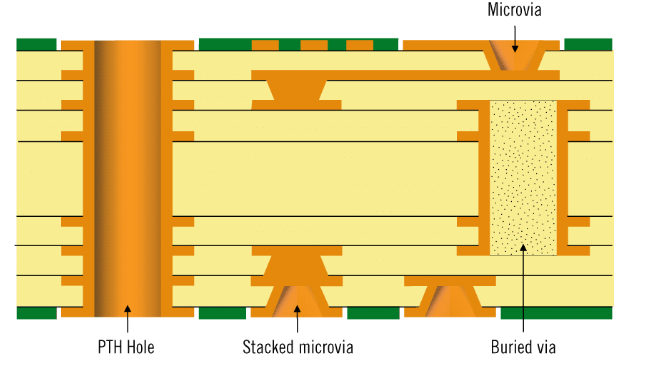 信頼性の向上:HDIの微小ビアはアスペクト比が小さく(通常1:1未満)、従来のスルーホールに比べて熱応力への耐性が向上します。