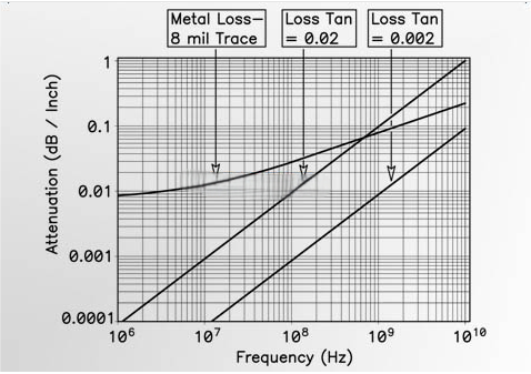 誘電率は電場内でどれだけ電気エネルギーを蓄えられるかを示す値で、PCB材料全般において低いほど高周波に適しています。Dkが高いと信号の伝搬速度が遅くなり、波形歪みやインピーダンス不整合を招く恐れがあります。